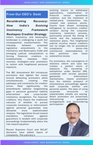 This issue features an analytical perspective on India’s evolving insolvency architecture and its impact on creditor behaviour. With legislative refinements targeting promoter accountability, guarantor liability, and related-party scrutiny, creditors are increasingly reassessing enforcement strategies and risk evaluation frameworks. The emerging jurisprudence reflects a system progressively aligned with economic realities and creditor protection objectives.