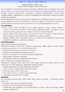 • IBC Conclave 2025 Recap: AIPE’s landmark event in New Delhi launched IBC Vision 2030: From Code to Catalyst, spotlighting capacity building, regulatory clarity, and tech-driven resolutions.