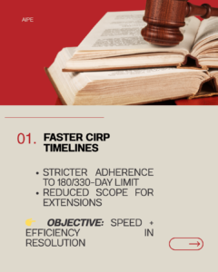 A stricter adherence to the 180/330-day CIRP timeline with significantly reduced scope for extensions reflects a push towards timely value maximisation.